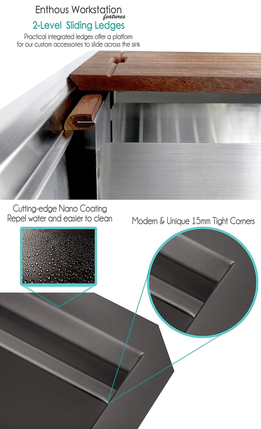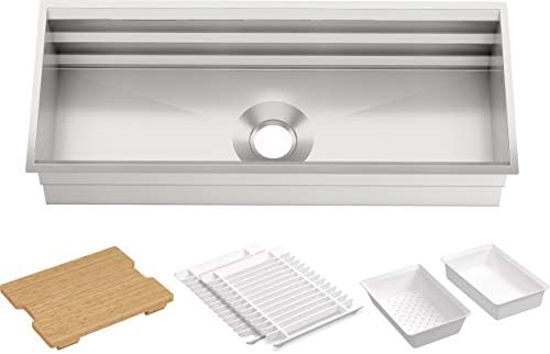 Get 5% in rewards with club o! Cutsom kitchen accessories fit both the upper and lower ledge, giving you a dual tear workstation pictured is a 33 inch workstation, undermount sink from create good sinks. 484.7 out of 5 stars. The overall dimensions are 45 x 19 1/8 x 10 and a 48″ or custom cabinet size is required for installation. The signature series workstation kitchen sink option.